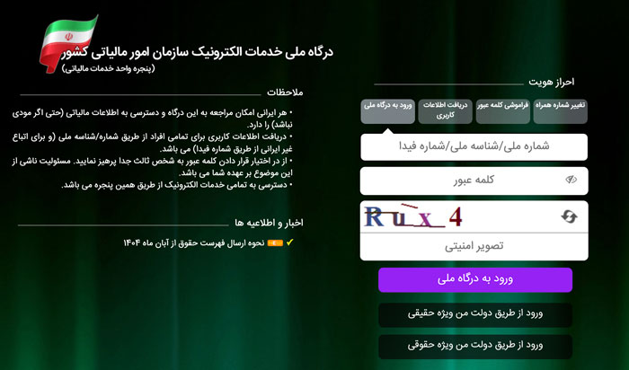 ورود به پرتال سازمان امور مالیاتی